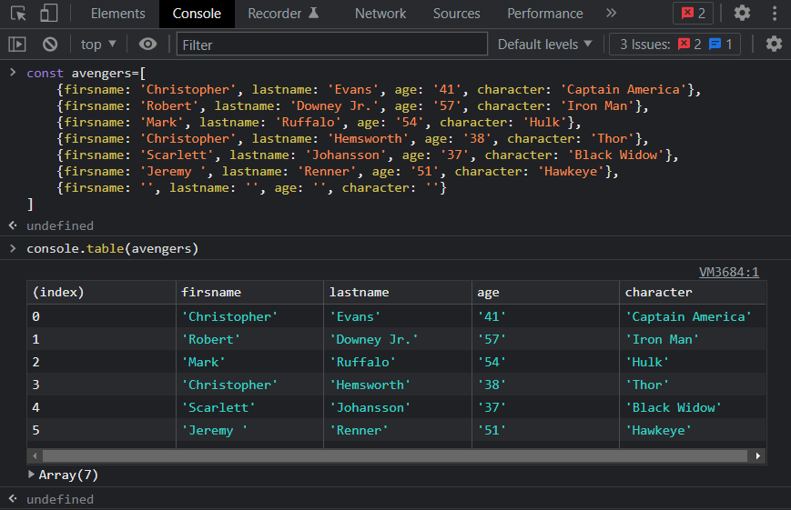 6. console.table()
