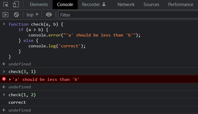 - console.assert()