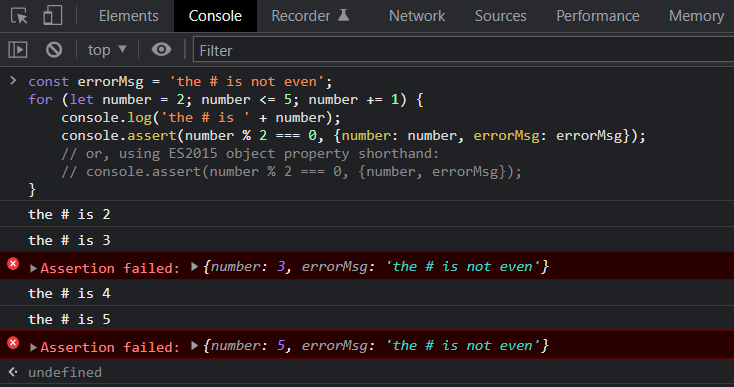 5. console.assert()