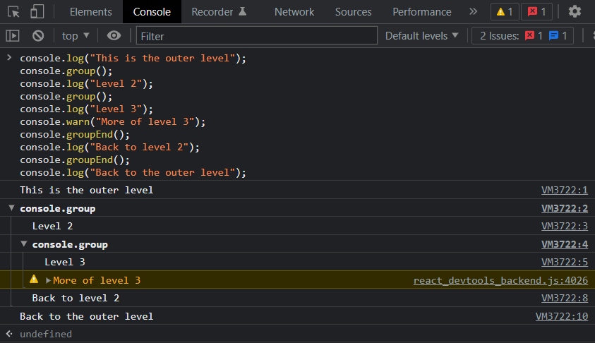 7. console.group()