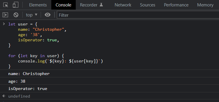 for .. in 구문은 key 와 value 로 이뤄진 object의 반복문을 돌릴 때 사용합니다.