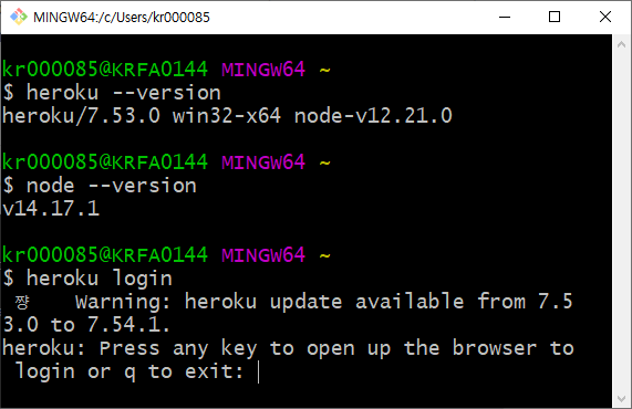 Heroku 계정이 생성된 상태이고, Node가 설치된 상태에서 진행하니 참고 부탁 드립니다.
