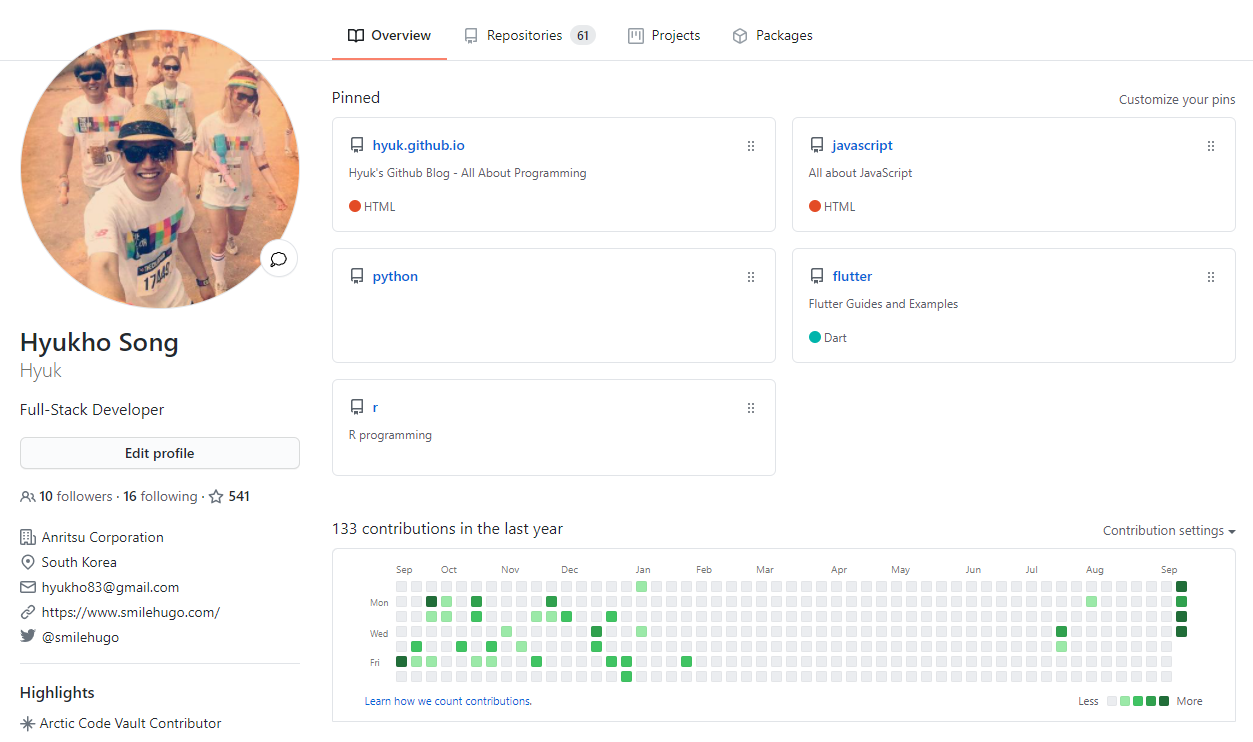 우선 저의 Github Profile의 변천사를 보여드리자면 다음과 같습니다.