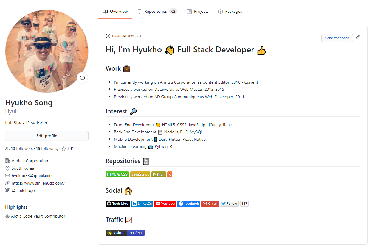 새로 적용된 Github Profile을 적용해서 다음과 같이 만들었습니다.