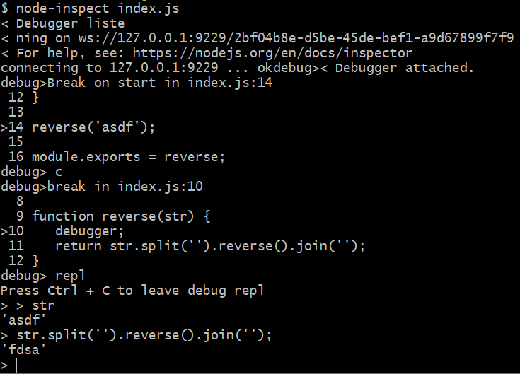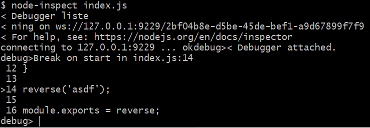 $ npm install -g node-inspect설치가 되었다면, 다음 명령어를 실행해서 디버깅을 합니다.