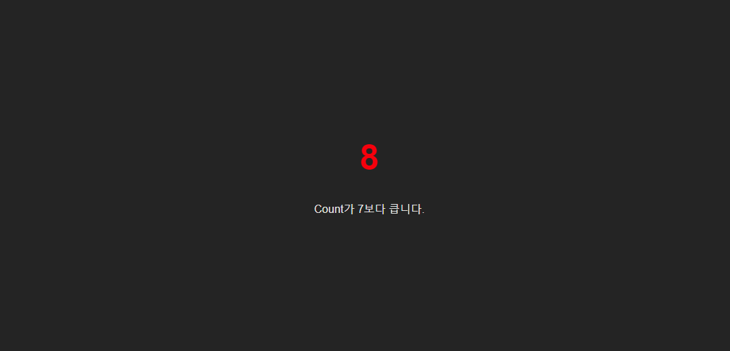 Count가 8일 경우 7보다 크기 때문에 특정 메시지가 보여지는 것을 확인할 수 있습니다.